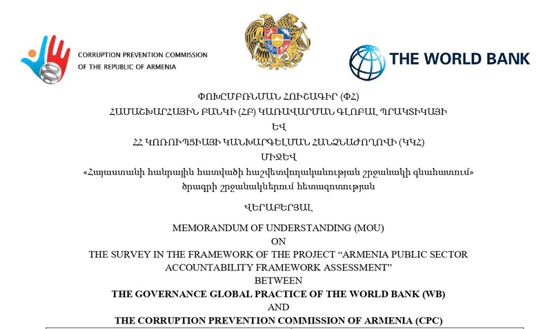 Փոխըմբռնման հուշագիր Կոռուպցիայի կանխարգելման հանձնաժողովի և Համաշխարհային բանկի միջև